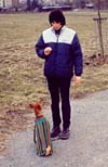 10. Na vodítku mě Skoty nesmí táhnout. To, že mě táhne znamená, že mě nerespektuje dostatečně. On to neustále zkouší. Jakmile začne táhnout, okamžitě cuknu vodítkem tak, aby mu to bylo nepříjemné. Pokud to opakovaně zkusí, dám mu povel " k noze". Při chůzi u nohy nesmí být vodítko napnuté
